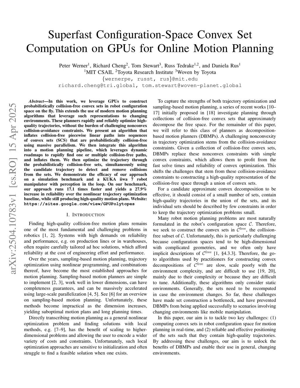 Superfast Configuration-Space Convex Set Computation on GPUs for Online Motion Planning