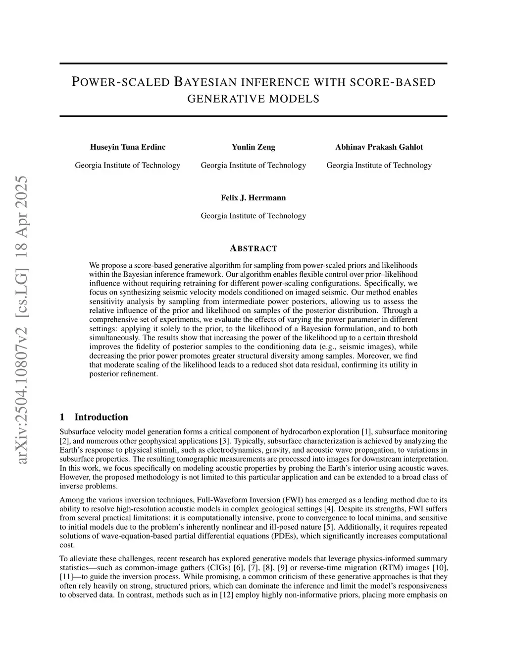 We propose a score-based generative algorithm for sampling from power-scaled priors and likelihoods within the Bayesian inference framework. Our algorithm enables flexible control over prior-likelihood influence without requiring retraining for different power-scaling configurations. Specifically, we focus on synthesizing seismic velocity models conditioned on imaged seismic. Our method enables sensitivity analysis by sampling from intermediate power posteriors, allowing us to assess the relative influence of the prior and likelihood on samples of the posterior distribution. Through a comprehensive set of experiments, we evaluate the effects of varying the power parameter in different settings: applying it solely to the prior, to the likelihood of a Bayesian formulation, and to both simultaneously. The results show that increasing the power of the likelihood up to a certain threshold improves the fidelity of posterior samples to the conditioning data (e.g., seismic images), while decreasing the prior power promotes greater structural diversity among samples. Moreover, we find that moderate scaling of the likelihood leads to a reduced shot data residual, confirming its utility in posterior refinement.