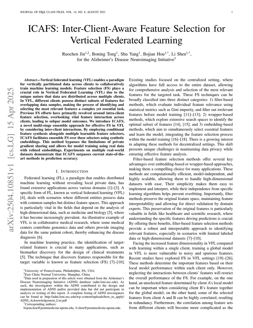 ICAFS: Inter-Client-Aware Feature Selection for Vertical Federated Learning