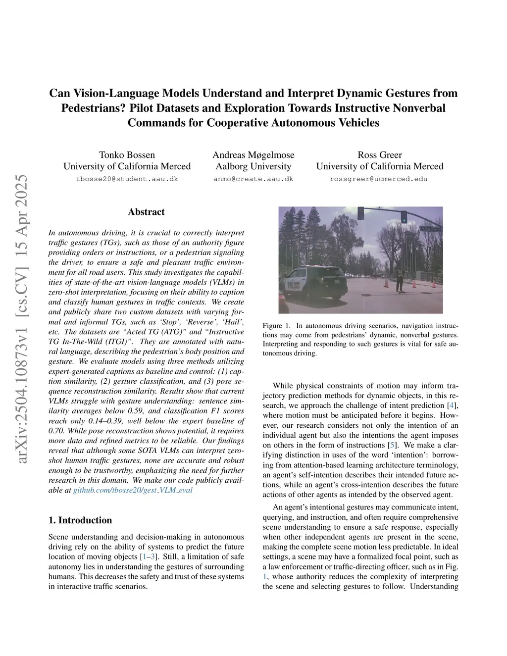 Can Vision-Language Models Understand and Interpret Dynamic Gestures from Pedestrians? Pilot Datasets and Exploration Towards Instructive Nonverbal Commands for Cooperative Autonomous Vehicles