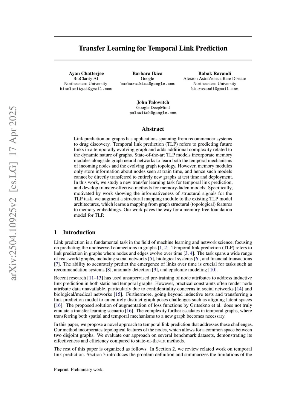 Link prediction on graphs has applications spanning from recommender systems to drug discovery. Temporal link prediction (TLP) refers to predicting future links in a temporally evolving graph and adds additional complexity related to the dynamic nature of graphs. State-of-the-art TLP models incorporate memory modules alongside graph neural networks to learn both the temporal mechanisms of incoming nodes and the evolving graph topology. However, memory modules only store information about nodes seen at train time, and hence such models cannot be directly transferred to entirely new graphs at test time and deployment. In this work, we study a new transfer learning task for temporal link prediction, and develop transfer-effective methods for memory-laden models. Specifically, motivated by work showing the informativeness of structural signals for the TLP task, we augment a structural mapping module to the existing TLP model architectures, which learns a mapping from graph structural (topological) features to memory embeddings. Our work paves the way for a memory-free foundation model for TLP.