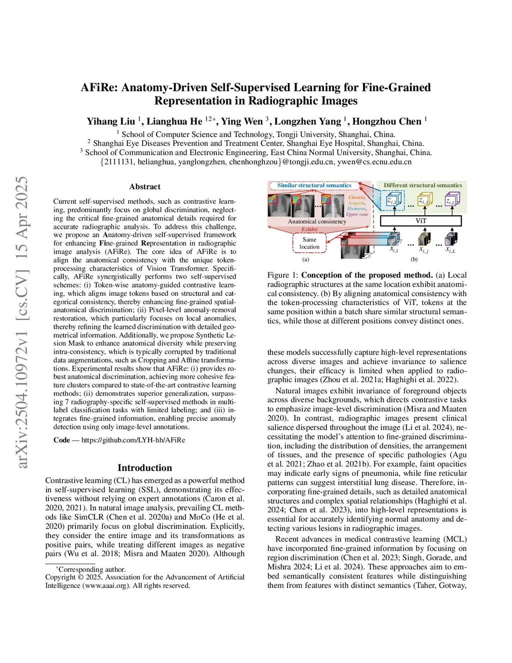 AFiRe: Anatomy-Driven Self-Supervised Learning for Fine-Grained Representation in Radiographic Images
