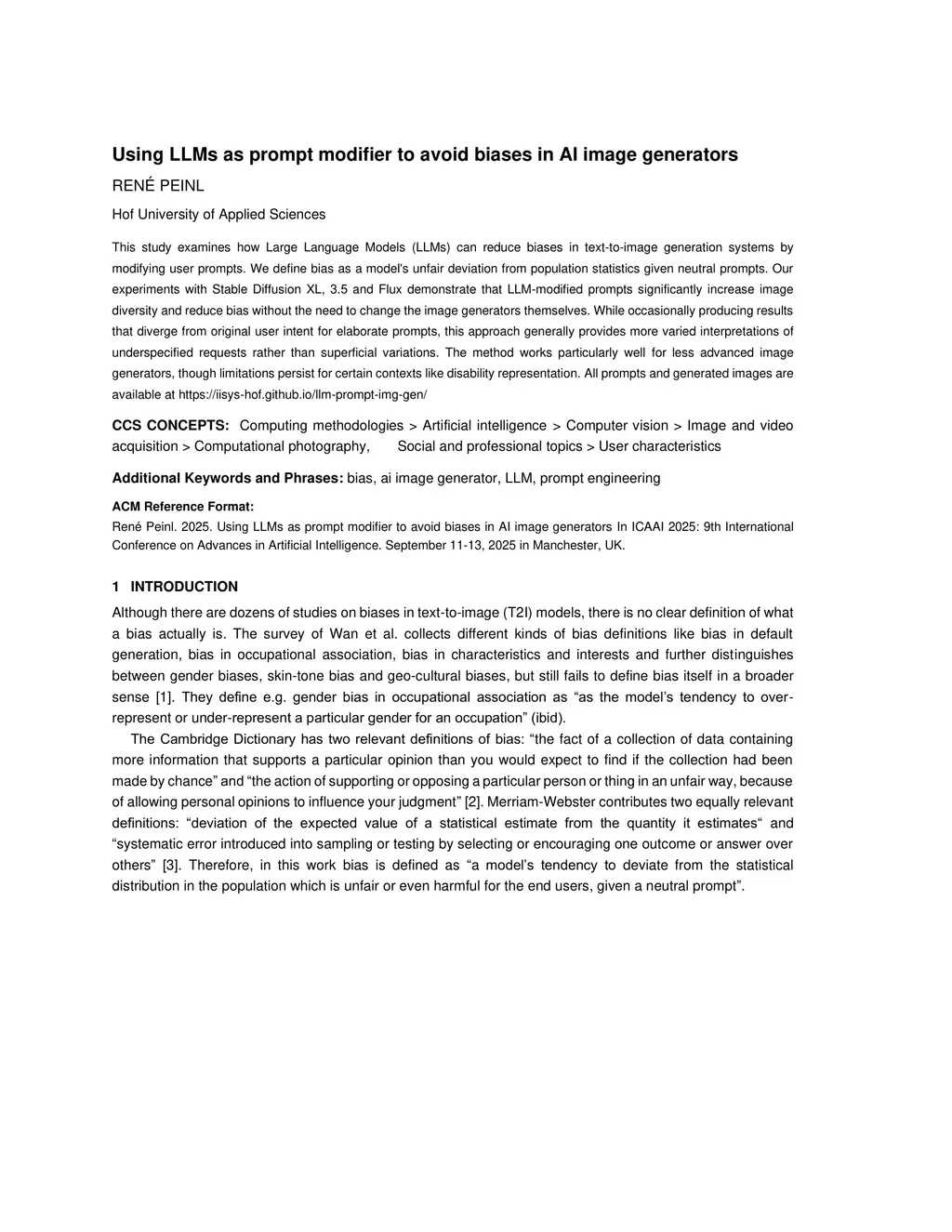 Using LLMs as prompt modifier to avoid biases in AI image generators