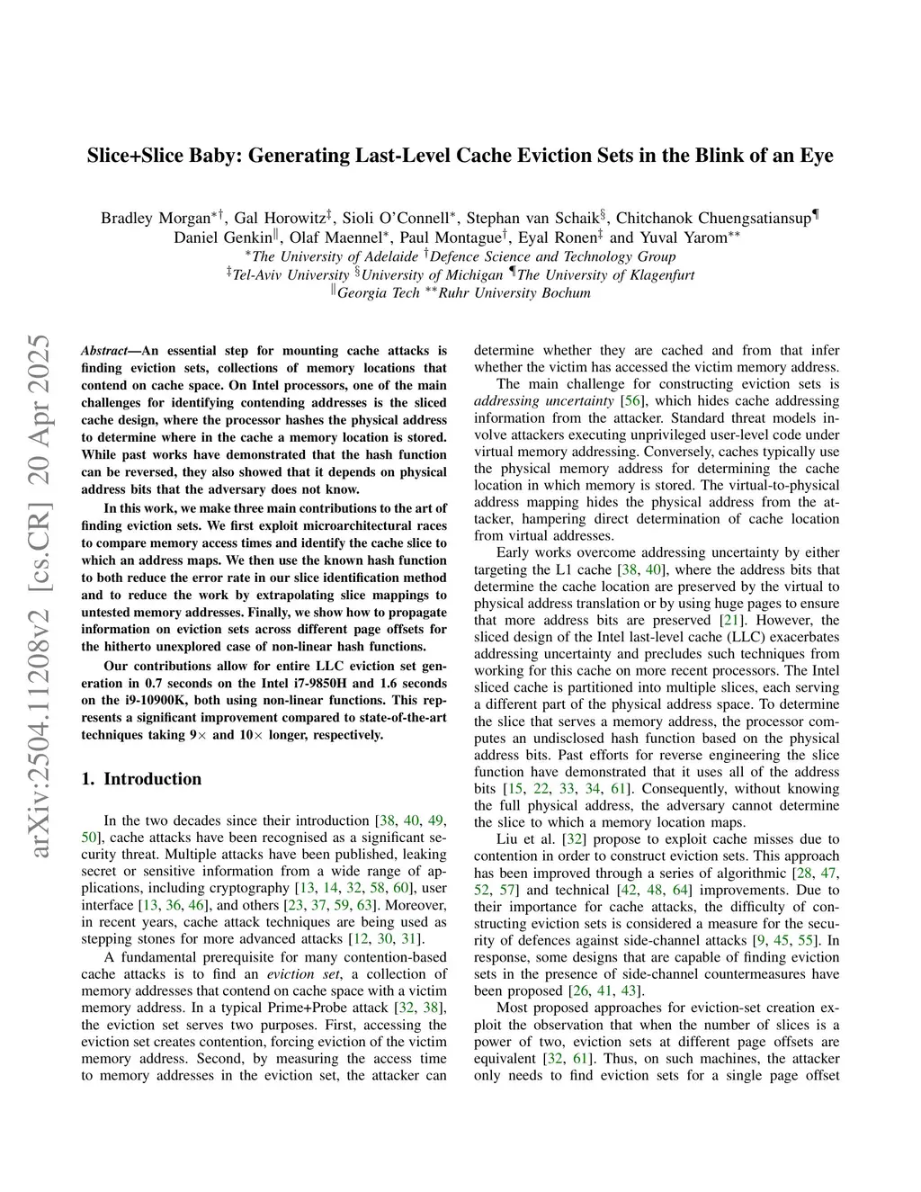 An essential step for mounting cache attacks is finding eviction sets, collections of memory locations that contend on cache space. On Intel processors, one of the main challenges for identifying contending addresses is the sliced cache design, where the processor hashes the physical address to determine where in the cache a memory location is stored. While past works have demonstrated that the hash function can be reversed, they also showed that it depends on physical address bits that the adversary does not know.In this work, we make three main contributions to the art of finding eviction sets. We first exploit microarchitectural races to compare memory access times and identify the cache slice to which an address maps. We then use the known hash function to both reduce the error rate in our slice identification method and to reduce the work by extrapolating slice mappings to untested memory addresses. Finally, we show how to propagate information on eviction sets across different page offsets for the hitherto unexplored case of non-linear hash functions.Our contributions allow for entire LLC eviction set generation in 0.7 seconds on the Intel i7-9850H and 1.6 seconds on the i9-10900K, both using non-linear functions. This represents a significant improvement compared to state-of-the-art techniques taking 9x and 10x longer, respectively.