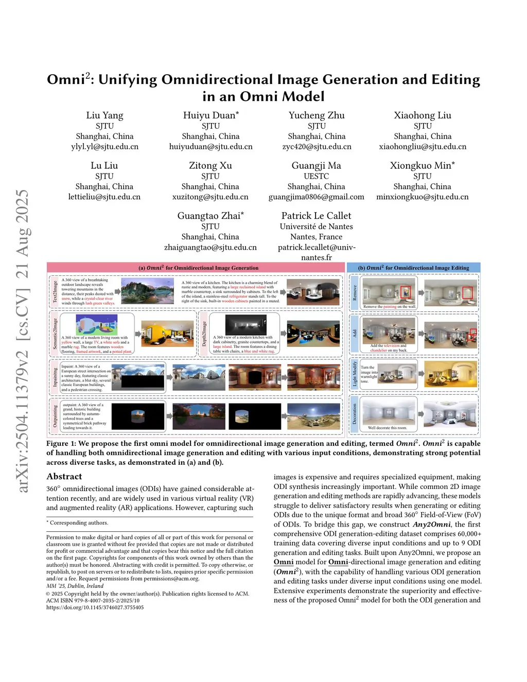 omnidirectional images (ODIs) have gained considerable attention recently, and are widely used in various virtual reality (VR) and augmented reality (AR) applications. However, capturing such images is expensive and requires specialized equipment, making ODI synthesis increasingly important. While common 2D image generation and editing methods are rapidly advancing, these models struggle to deliver satisfactory results when generating or editing ODIs due to the unique format and broad 360 Field-of-View (FoV) of ODIs. To bridge this gap, we construct \textbf{\textit{Any2Omni}}, the first comprehensive ODI generation-editing dataset comprises 60,000+ training data covering diverse input conditions and up to 9 ODI generation and editing tasks. Built upon Any2Omni, we propose an \textbf{\underline{Omni}} model for \textbf{\underline{Omni}}-directional image generation and editing (\textbf{\textit{Omni}}), with the capability of handling various ODI generation and editing tasks under diverse input conditions using one model. Extensive experiments demonstrate the superiority and effectiveness of the proposed Omni model for both the ODI generation and editing tasks. Both the Any2Omni dataset and the Omni model are publicly available at:this https URL.