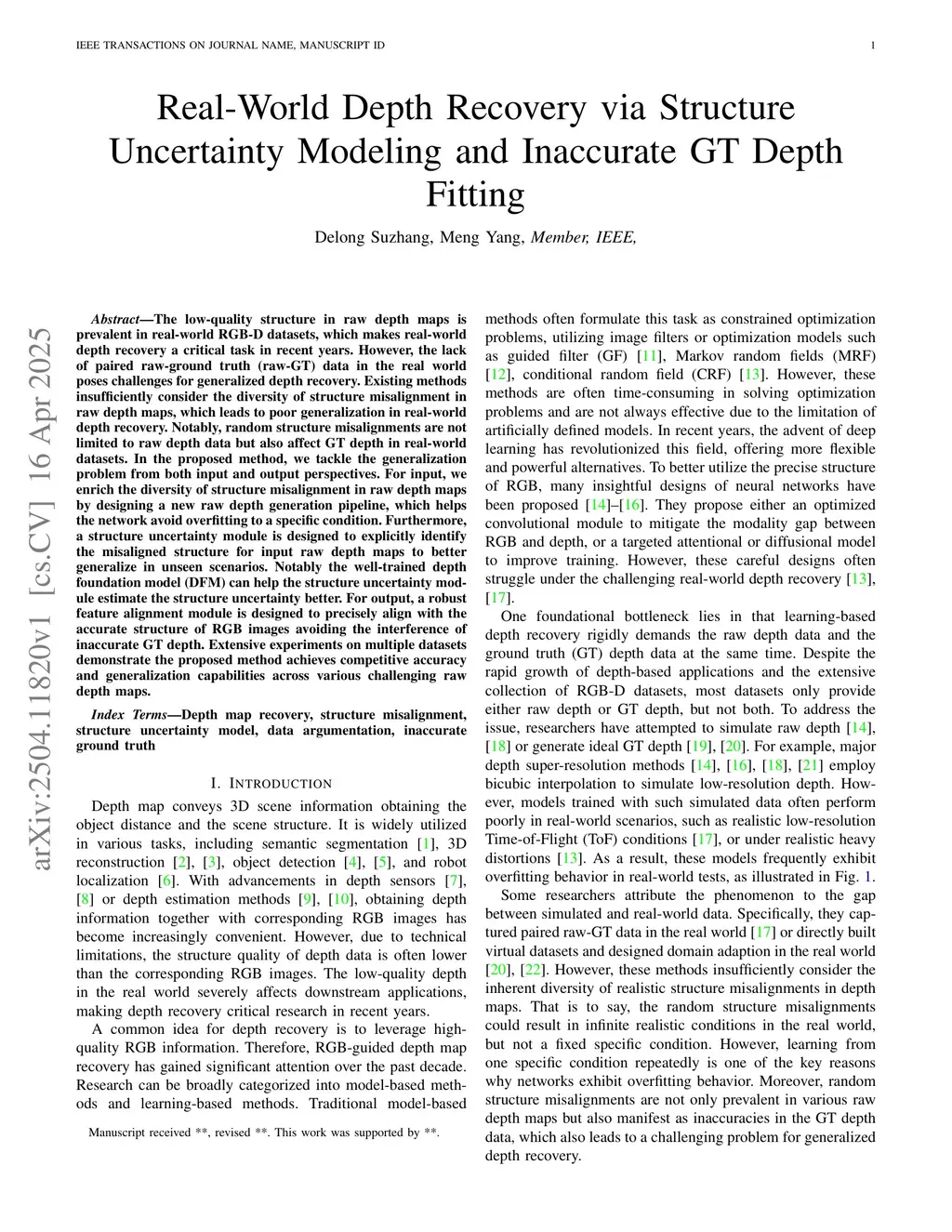 Real-World Depth Recovery via Structure Uncertainty Modeling and Inaccurate GT Depth Fitting