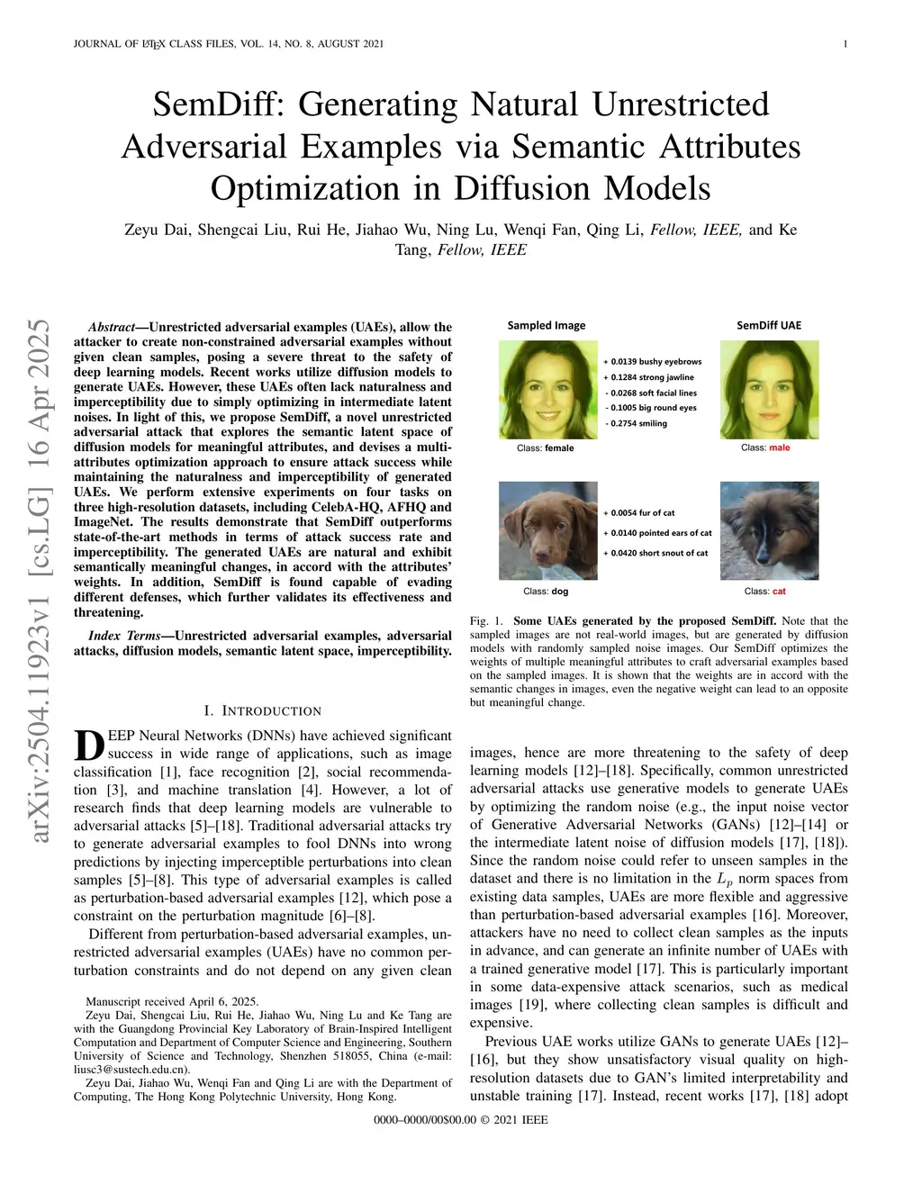 SemDiff: Generating Natural Unrestricted Adversarial Examples via Semantic Attributes Optimization in Diffusion Models