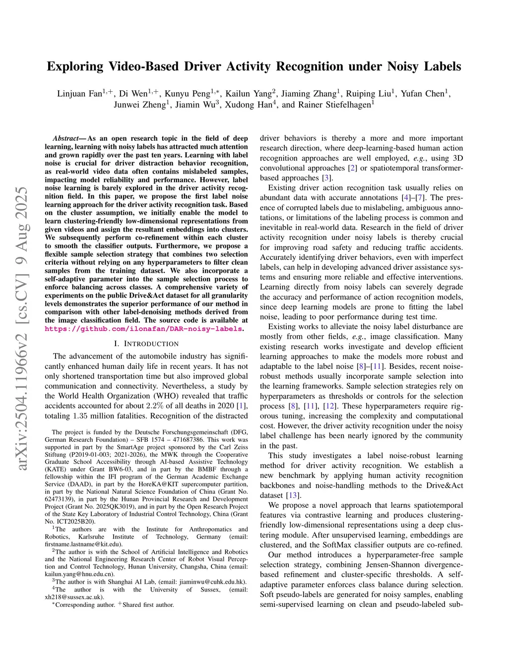 Exploring Video-Based Driver Activity Recognition under Noisy Labels