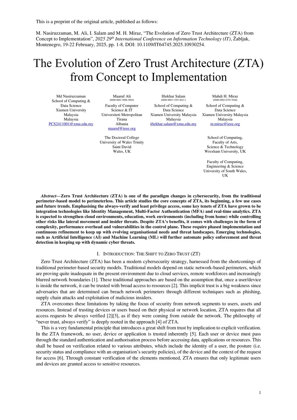 The Evolution of Zero Trust Architecture (ZTA) from Concept to Implementation