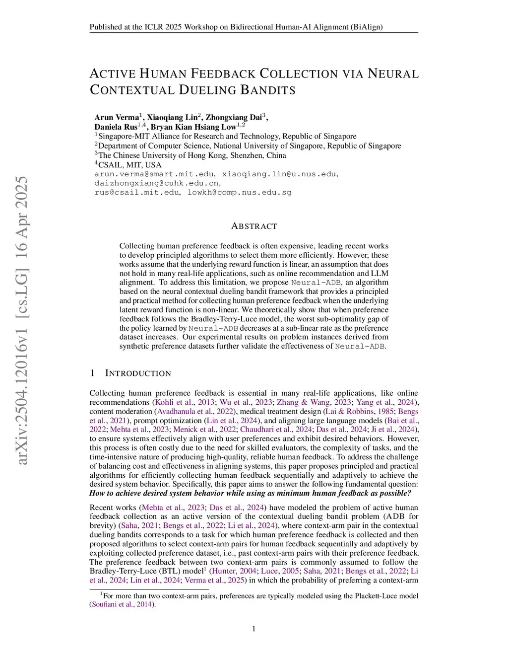 Active Human Feedback Collection via Neural Contextual Dueling Bandits