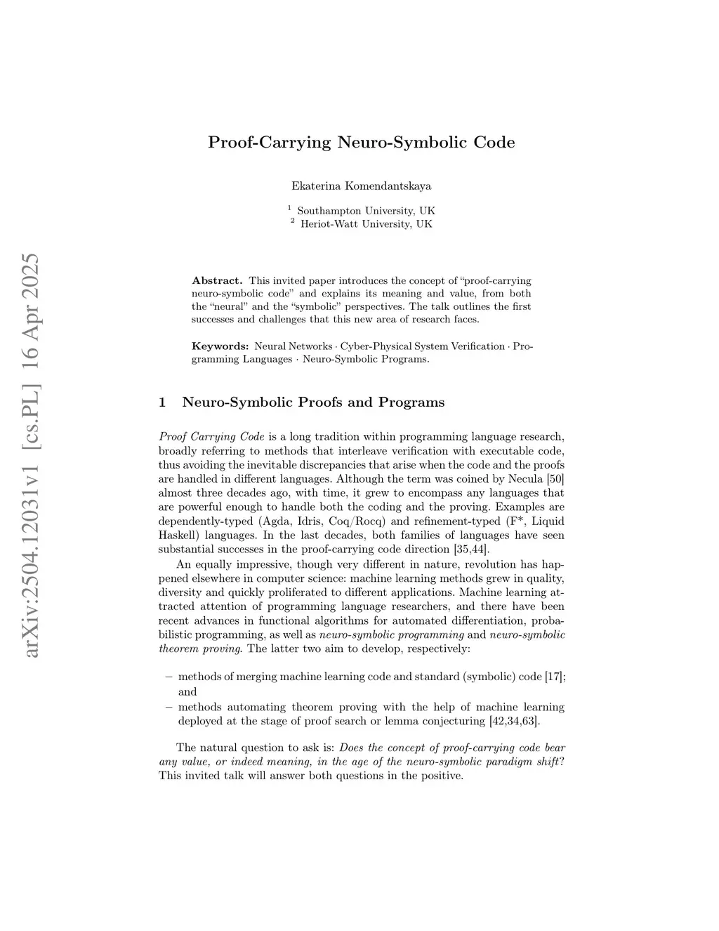 This invited paper introduces the concept of "proof-carrying neuro-symbolic code" and explains its meaning and value, from both the "neural" and the "symbolic" perspectives. The talk outlines the first successes and challenges that this new area of research faces.