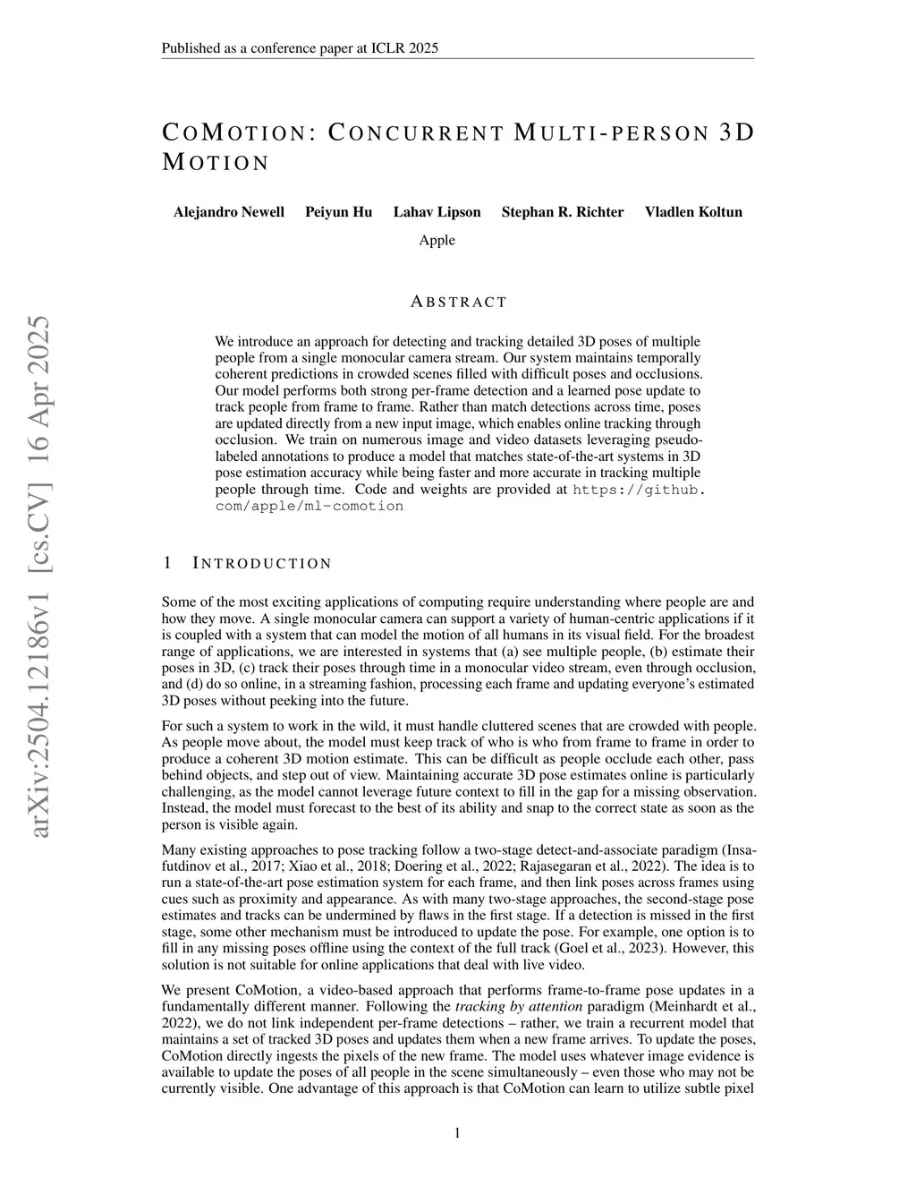 We introduce an approach for detecting and tracking detailed 3D poses of multiple people from a single monocular camera stream. Our system maintains temporally coherent predictions in crowded scenes filled with difficult poses and occlusions. Our model performs both strong per-frame detection and a learned pose update to track people from frame to frame. Rather than match detections across time, poses are updated directly from a new input image, which enables online tracking through occlusion. We train on numerous image and video datasets leveraging pseudo-labeled annotations to produce a model that matches state-of-the-art systems in 3D pose estimation accuracy while being faster and more accurate in tracking multiple people through time. Code and weights are provided atthis https URL