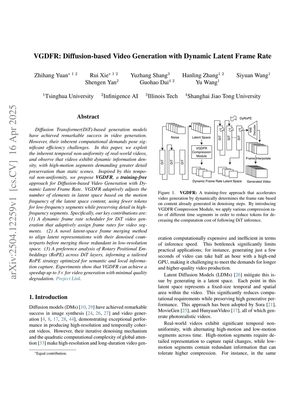 VGDFR: Diffusion-based Video Generation with Dynamic Latent Frame Rate