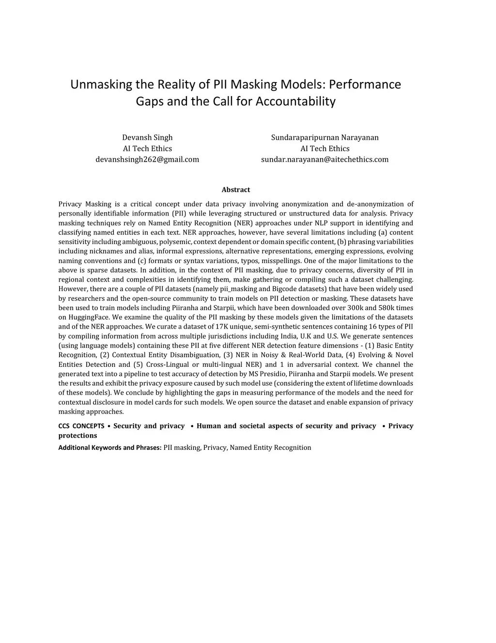 Privacy Masking is a critical concept under data privacy involving anonymization and de-anonymization of personally identifiable information (PII). Privacy masking techniques rely on Named Entity Recognition (NER) approaches under NLP support in identifying and classifying named entities in each text. NER approaches, however, have several limitations including (a) content sensitivity including ambiguous, polysemic, context dependent or domain specific content, (b) phrasing variabilities including nicknames and alias, informal expressions, alternative representations, emerging expressions, evolving naming conventions and (c) formats or syntax variations, typos, misspellings. However, there are a couple of PII datasets that have been widely used by researchers and the open-source community to train models on PII detection or masking. These datasets have been used to train models including Piiranha and Starpii, which have been downloaded over 300k and 580k times on HuggingFace. We examine the quality of the PII masking by these models given the limitations of the datasets and of the NER approaches. We curate a dataset of 17K unique, semi-synthetic sentences containing 16 types of PII by compiling information from across multiple jurisdictions including India, U.K and U.S. We generate sentences (using language models) containing these PII at five different NER detection feature dimensions - (1) Basic Entity Recognition, (2) Contextual Entity Disambiguation, (3) NER in Noisy & Real-World Data, (4) Evolving & Novel Entities Detection and (5) Cross-Lingual or multi-lingual NER) and 1 in adversarial context. We present the results and exhibit the privacy exposure caused by such model use (considering the extent of lifetime downloads of these models). We conclude by highlighting the gaps in measuring performance of the models and the need for contextual disclosure in model cards for such models.