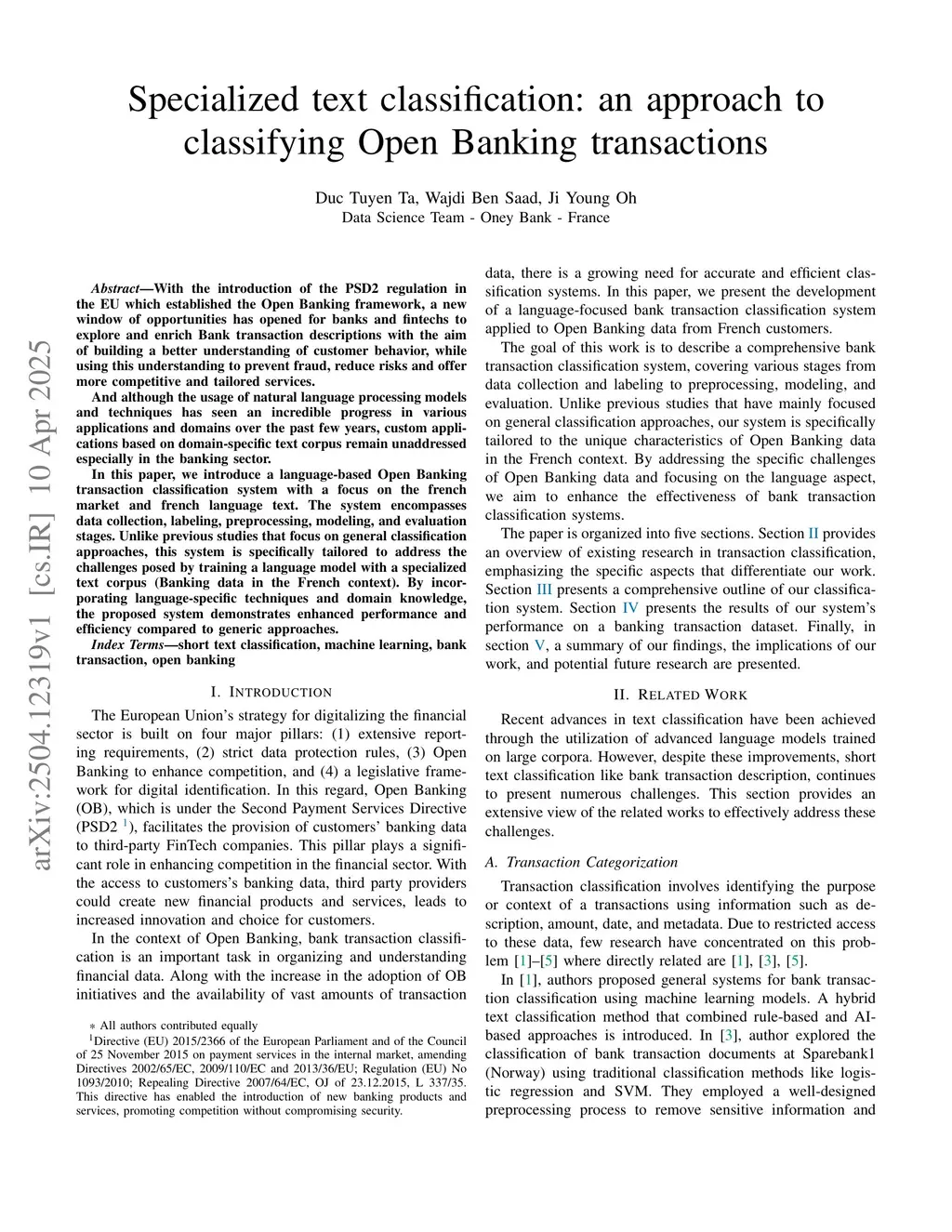 Specialized text classification: an approach to classifying Open Banking transactions