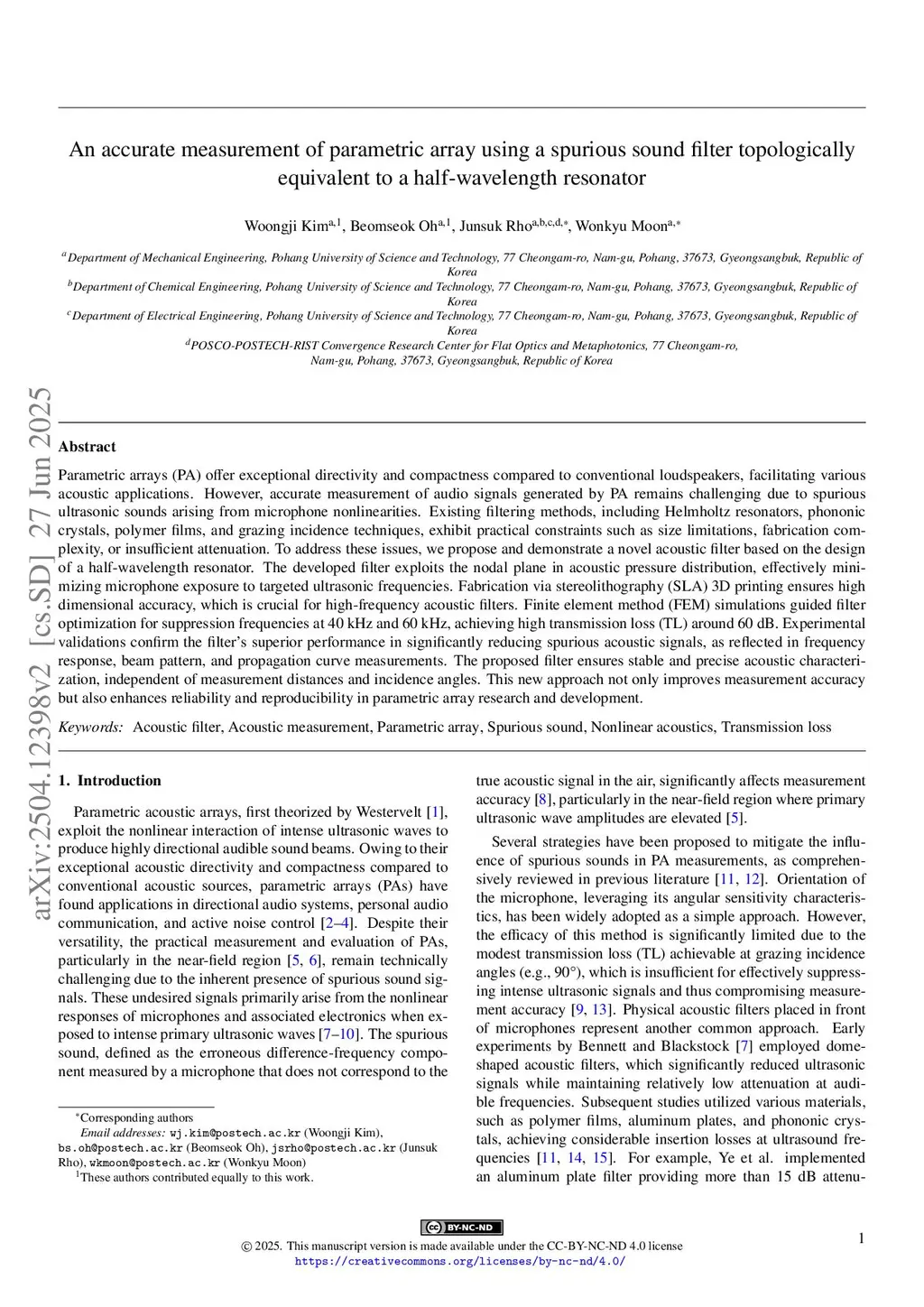 An accurate measurement of parametric array using a spurious sound filter topologically equivalent to a half-wavelength resonator