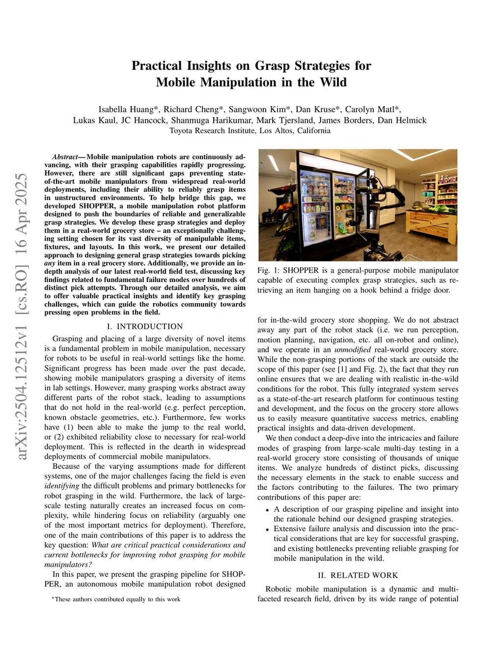 Mobile manipulation robots are continuously advancing, with their grasping capabilities rapidly progressing. However, there are still significant gaps preventing state-of-the-art mobile manipulators from widespread real-world deployments, including their ability to reliably grasp items in unstructured environments. To help bridge this gap, we developed SHOPPER, a mobile manipulation robot platform designed to push the boundaries of reliable and generalizable grasp strategies. We develop these grasp strategies and deploy them in a real-world grocery store -- an exceptionally challenging setting chosen for its vast diversity of manipulable items, fixtures, and layouts. In this work, we present our detailed approach to designing general grasp strategies towards picking any item in a real grocery store. Additionally, we provide an in-depth analysis of our latest real-world field test, discussing key findings related to fundamental failure modes over hundreds of distinct pick attempts. Through our detailed analysis, we aim to offer valuable practical insights and identify key grasping challenges, which can guide the robotics community towards pressing open problems in the field.