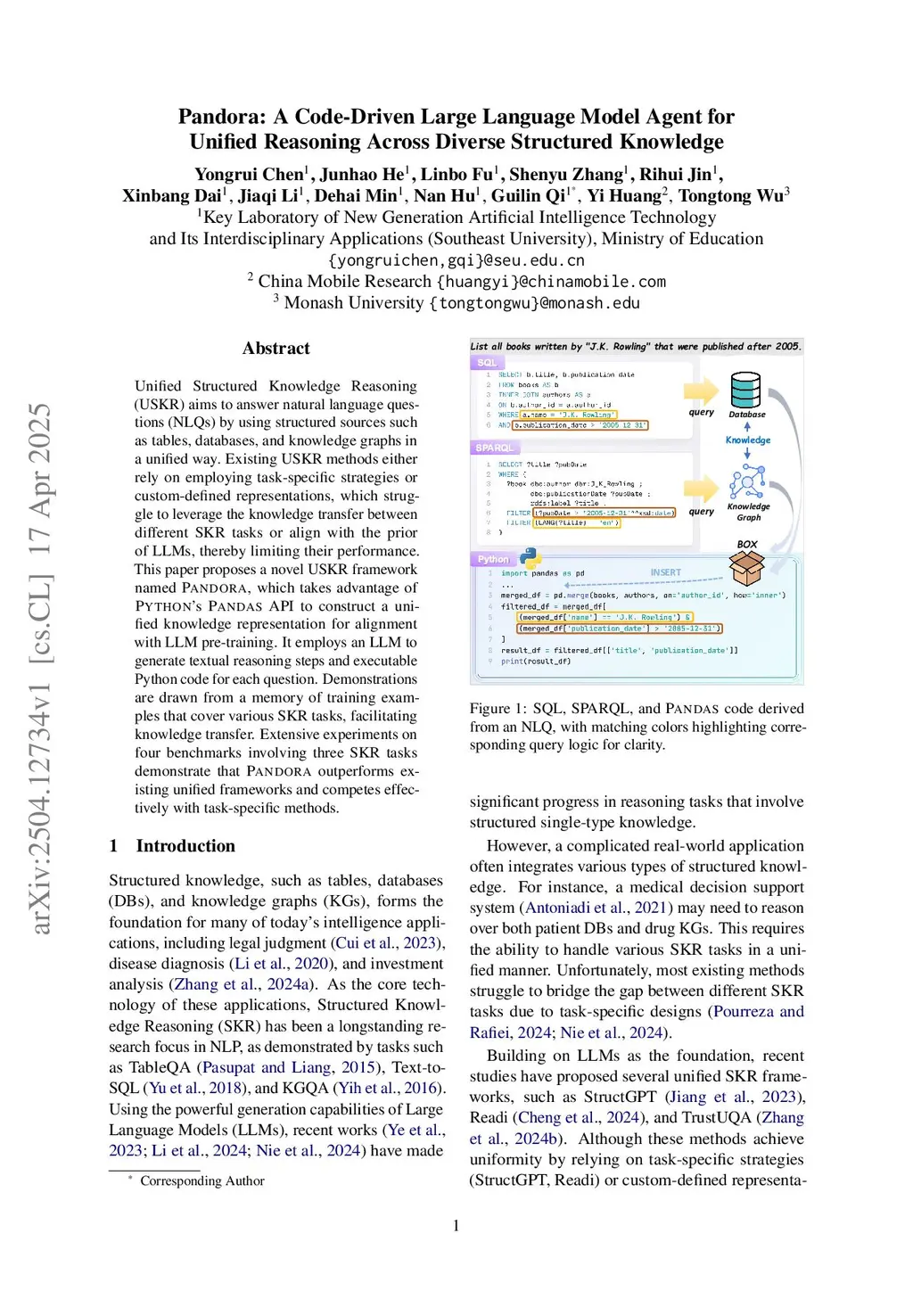 Pandora: A Code-Driven Large Language Model Agent for Unified Reasoning Across Diverse Structured Knowledge