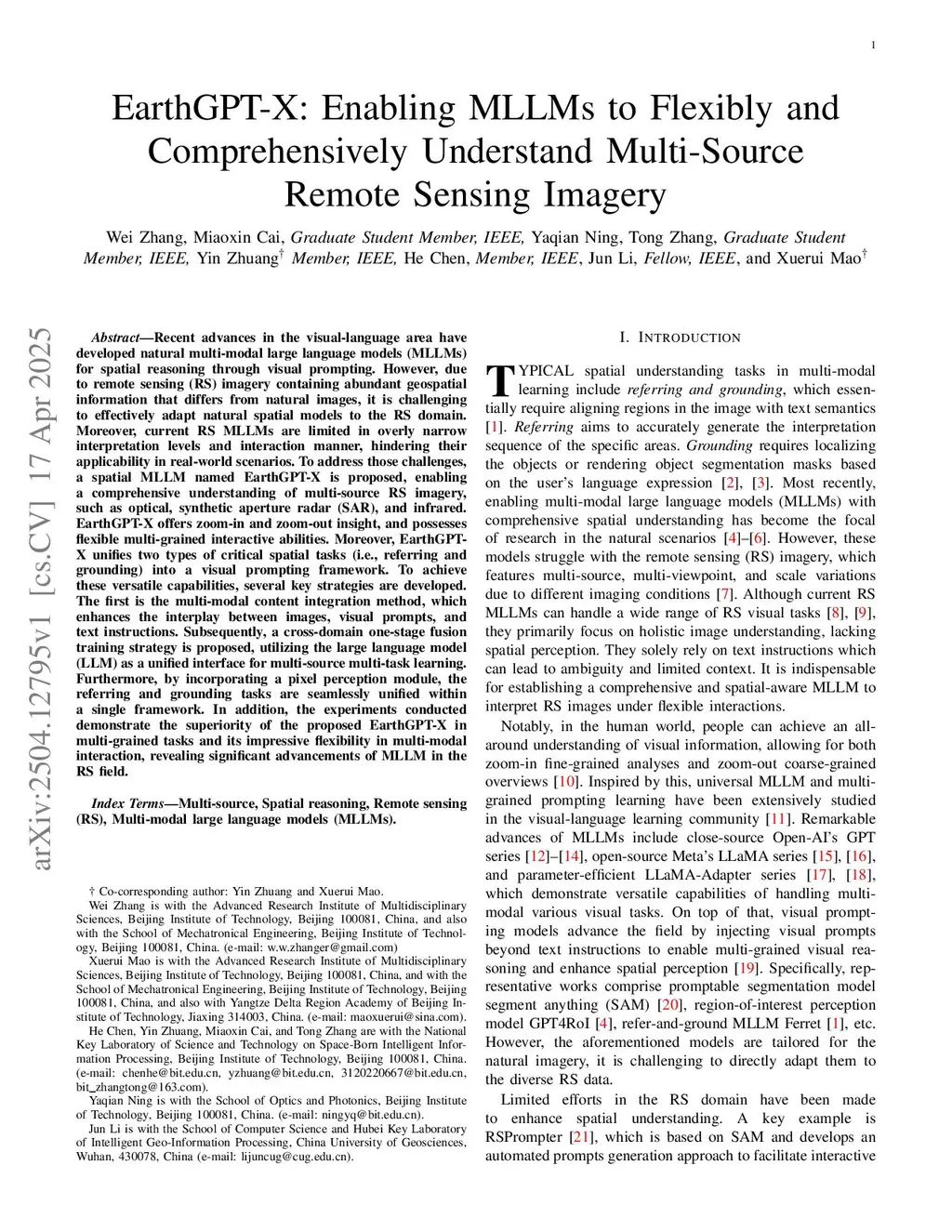 EarthGPT-X: A Spatial MLLM for Multi-level Multi-Source Remote Sensing Imagery Understanding with Visual Prompting
