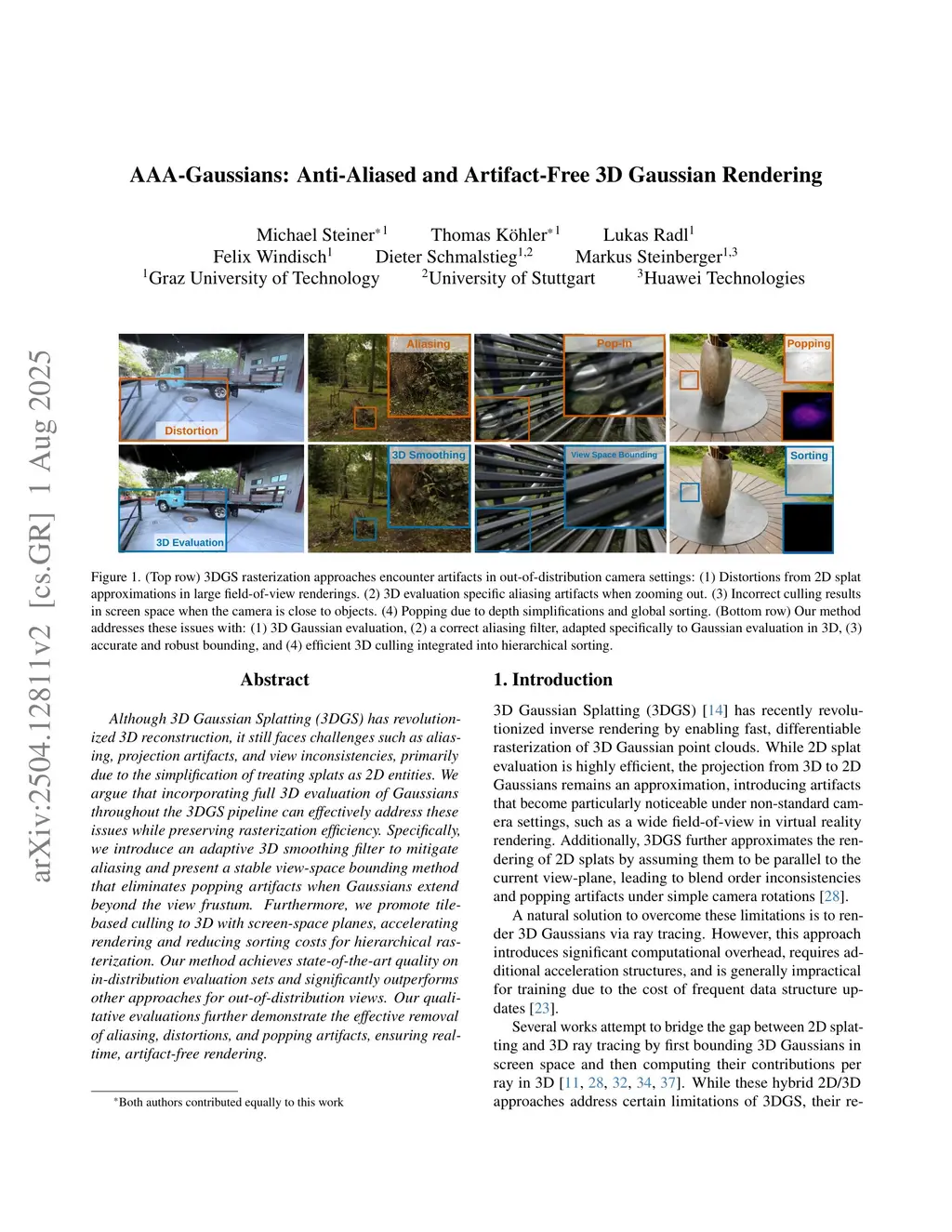 Although 3D Gaussian Splatting (3DGS) has revolutionized 3D reconstruction, it still faces challenges such as aliasing, projection artifacts, and view inconsistencies, primarily due to the simplification of treating splats as 2D entities. We argue that incorporating full 3D evaluation of Gaussians throughout the 3DGS pipeline can effectively address these issues while preserving rasterization efficiency. Specifically, we introduce an adaptive 3D smoothing filter to mitigate aliasing and present a stable view-space bounding method that eliminates popping artifacts when Gaussians extend beyond the view frustum. Furthermore, we promote tile-based culling to 3D with screen-space planes, accelerating rendering and reducing sorting costs for hierarchical rasterization. Our method achieves state-of-the-art quality on in-distribution evaluation sets and significantly outperforms other approaches for out-of-distribution views. Our qualitative evaluations further demonstrate the effective removal of aliasing, distortions, and popping artifacts, ensuring real-time, artifact-free rendering.