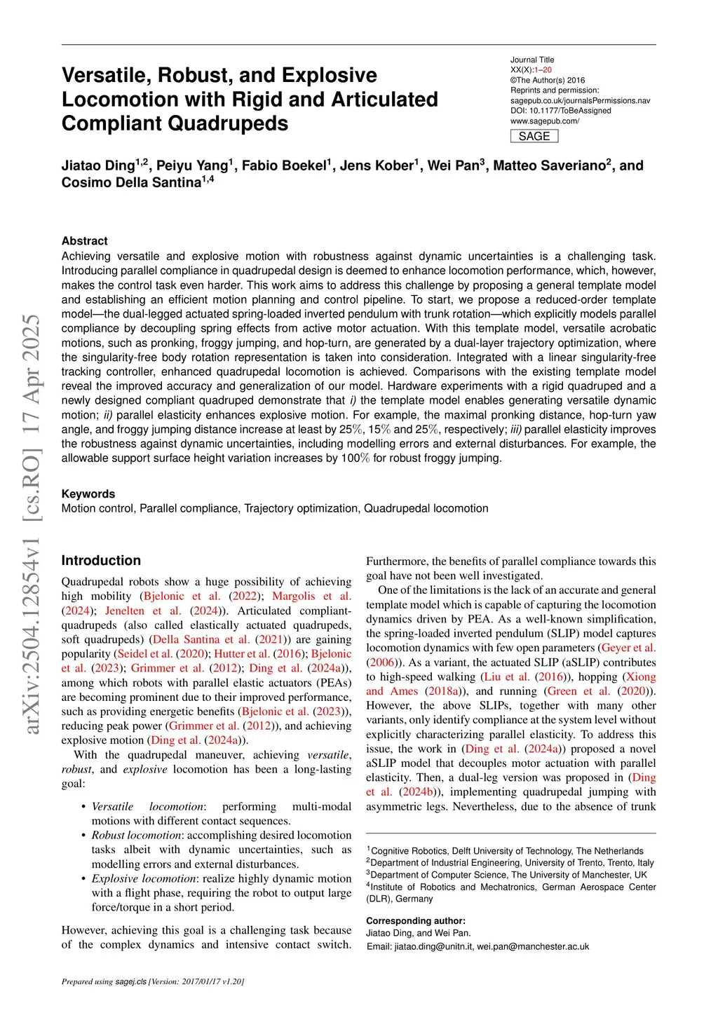 Versatile, Robust, and Explosive Locomotion with Rigid and Articulated Compliant Quadrupeds