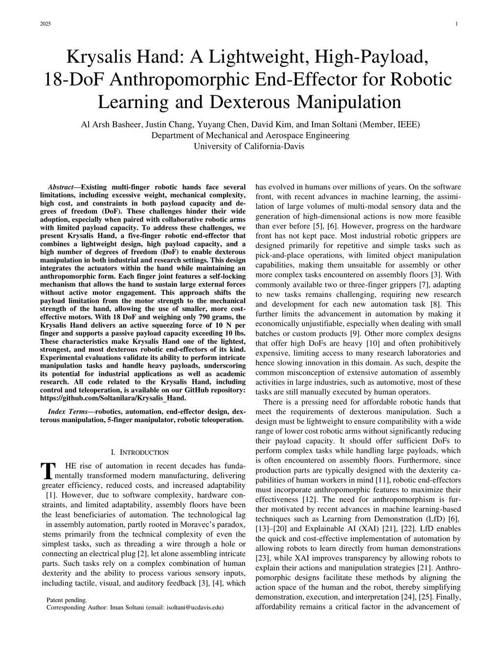 Krysalis Hand: A Lightweight, High-Payload, 18-DoF Anthropomorphic End-Effector for Robotic Learning and Dexterous Manipulation