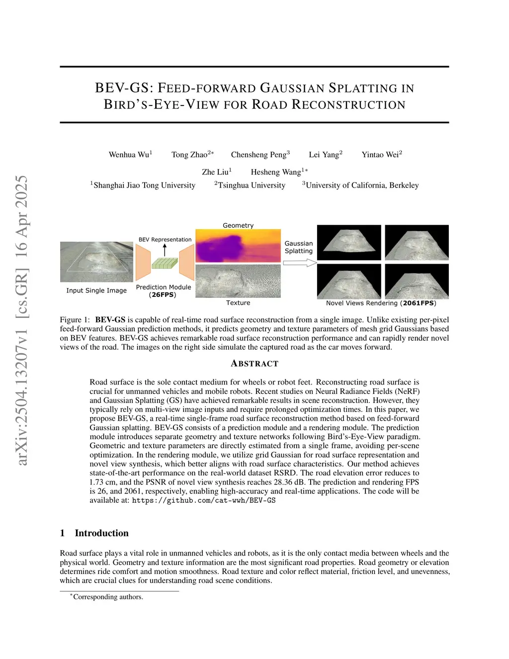 BEV-GS: Feed-forward Gaussian Splatting in Bird's-Eye-View for Road Reconstruction