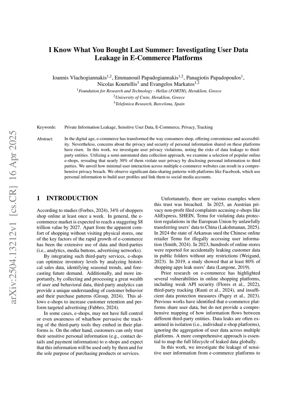 In the digital age, e-commerce has transformed the way consumers shop, offering convenience and accessibility. Nevertheless, concerns about the privacy and security of personal information shared on these platforms have risen. In this work, we investigate user privacy violations, noting the risks of data leakage to third-party entities. Utilizing a semi-automated data collection approach, we examine a selection of popular online e-shops, revealing that nearly 30% of them violate user privacy by disclosing personal information to third parties. We unveil how minimal user interaction across multiple e-commerce websites can result in a comprehensive privacy breach. We observe significant data-sharing patterns with platforms like Facebook, which use personal information to build user profiles and link them to social media accounts.