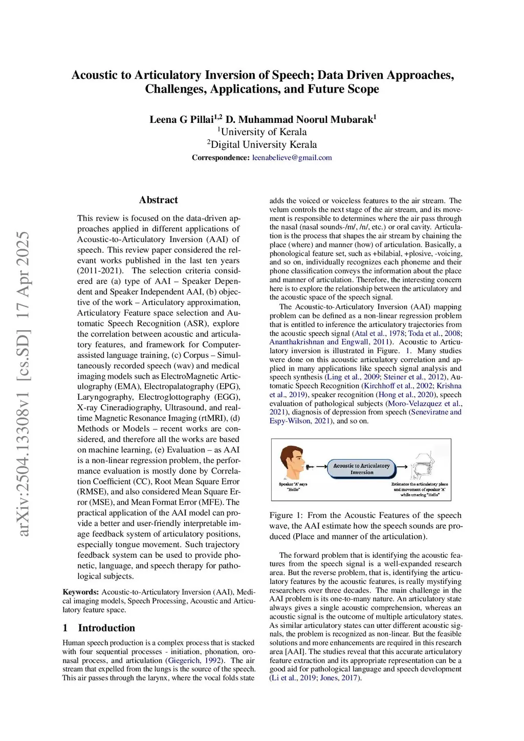 Acoustic to Articulatory Inversion of Speech; Data Driven Approaches, Challenges, Applications, and Future Scope