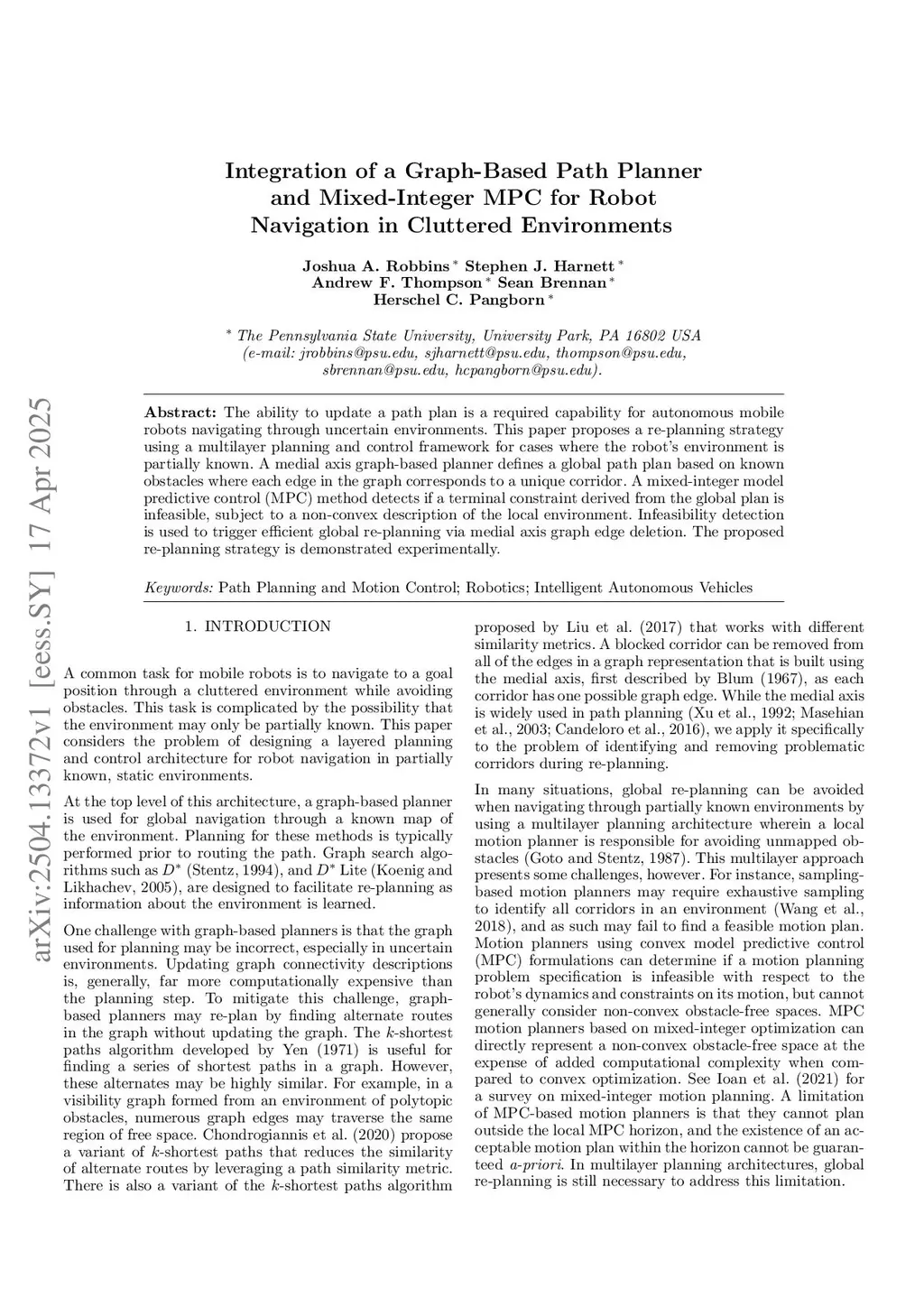 Integration of a Graph-Based Path Planner and Mixed-Integer MPC for Robot Navigation in Cluttered Environments