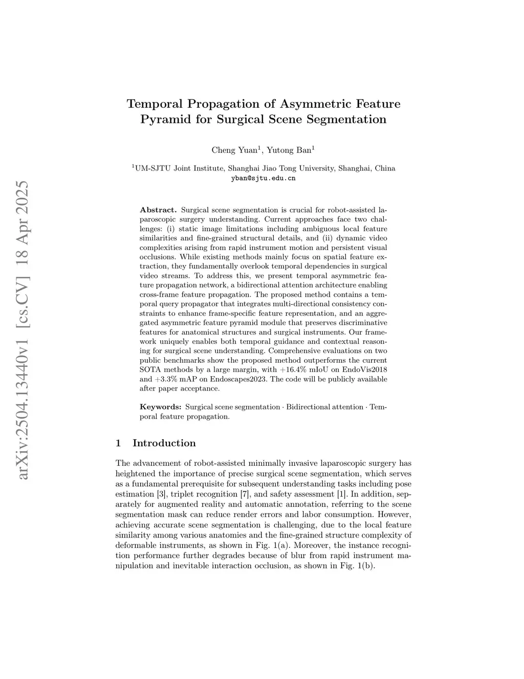 Temporal Propagation of Asymmetric Feature Pyramid for Surgical Scene Segmentation