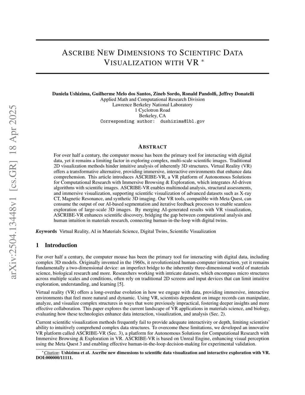 Ascribe New Dimensions to Scientific Data Visualization with VR