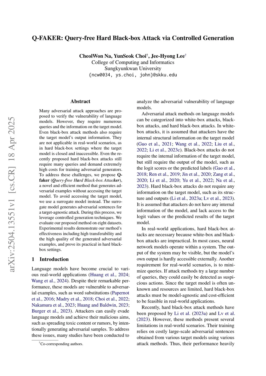 Q-FAKER: Query-free Hard Black-box Attack via Controlled Generation