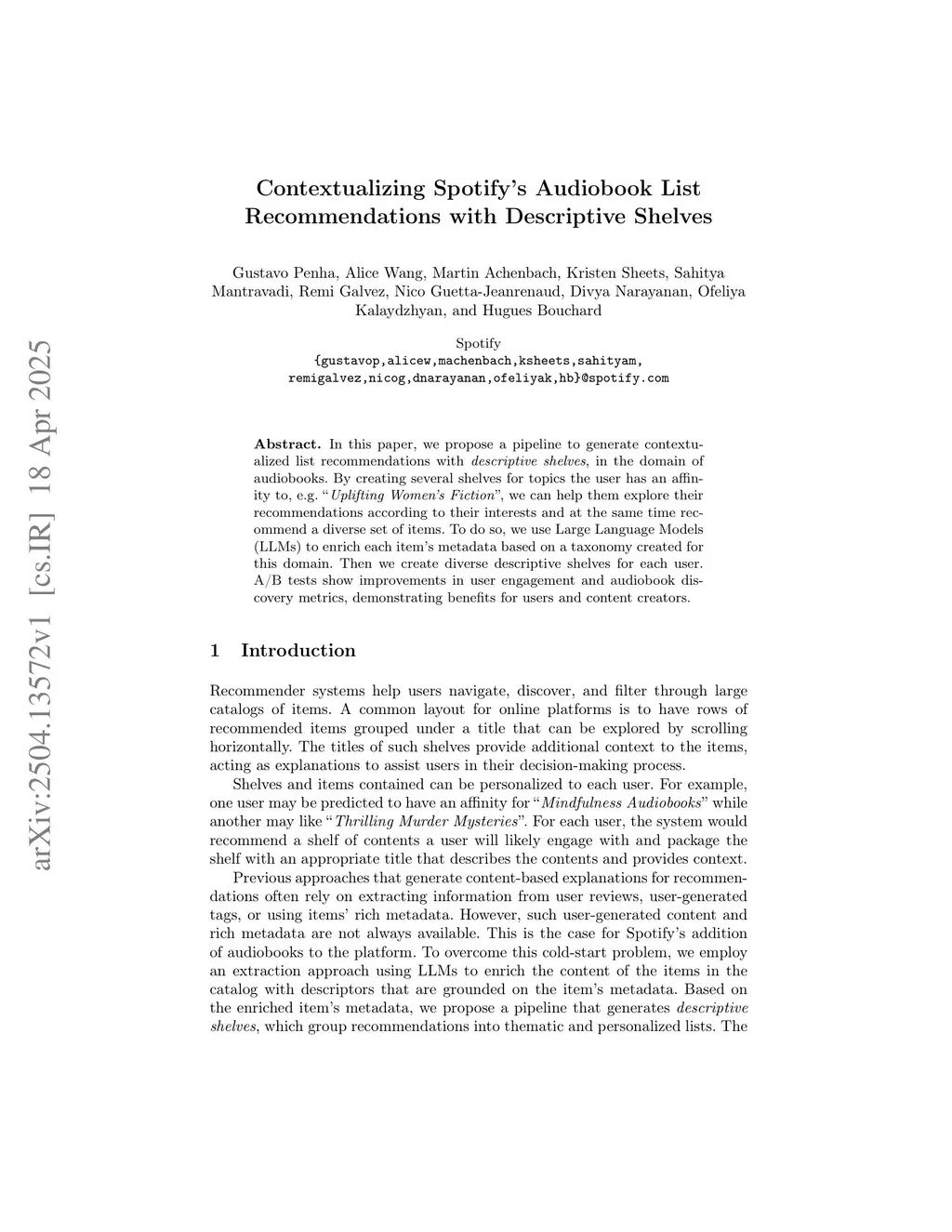 Contextualizing Spotify's Audiobook List Recommendations with Descriptive Shelves