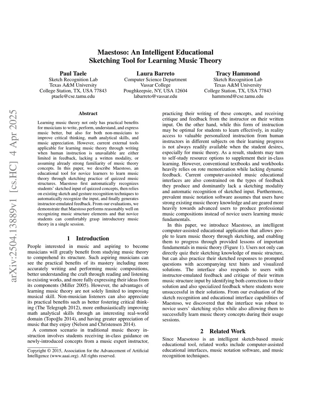 Maestoso: An Intelligent Educational Sketching Tool for Learning Music Theory