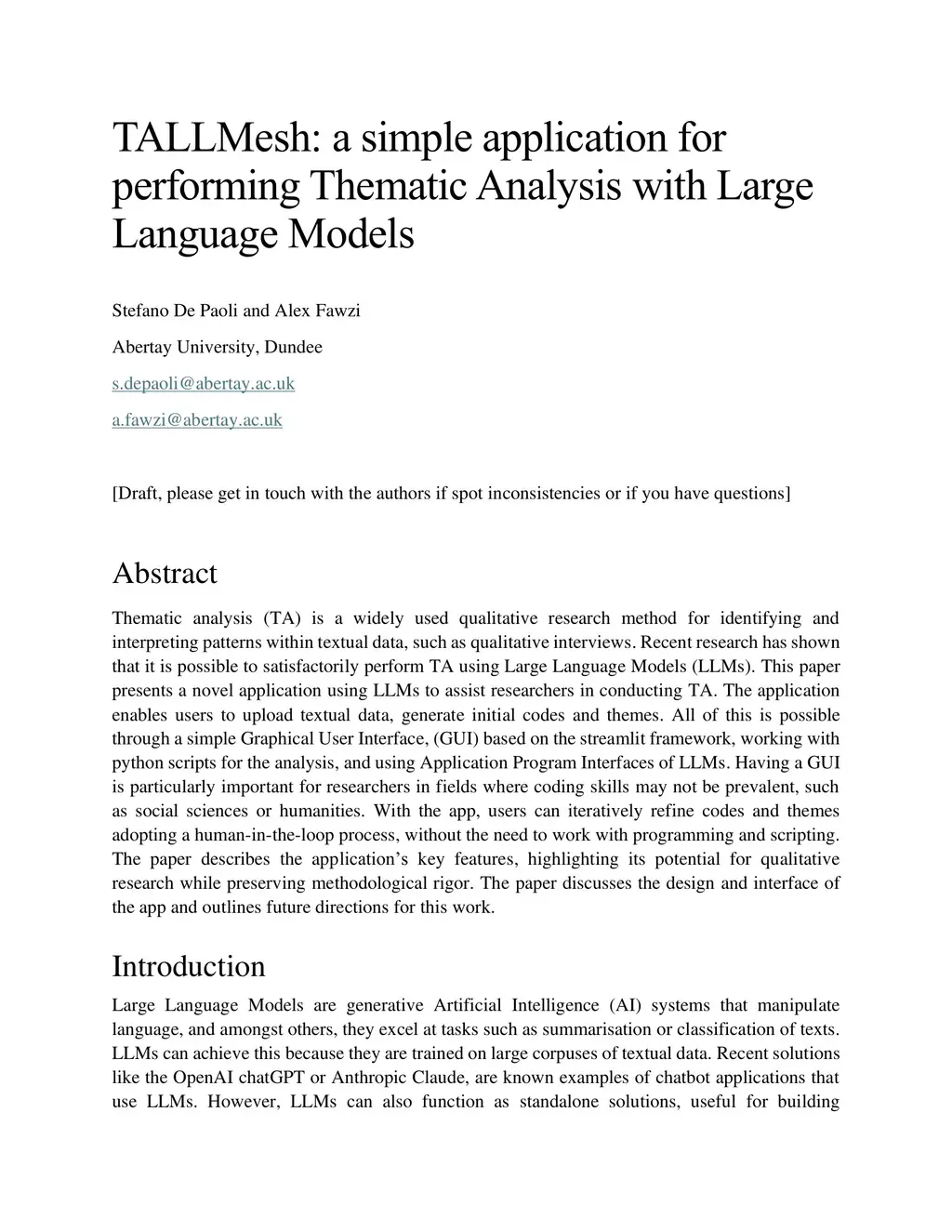 TALLMesh: a simple application for performing Thematic Analysis with Large Language Models