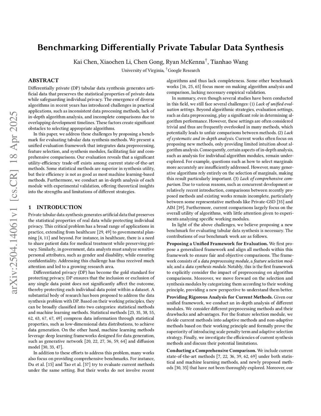Benchmarking Differentially Private Tabular Data Synthesis