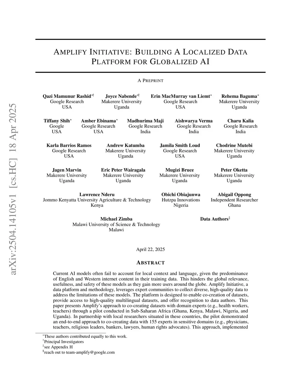 Amplify Initiative: Building A Localized Data Platform for Globalized AI