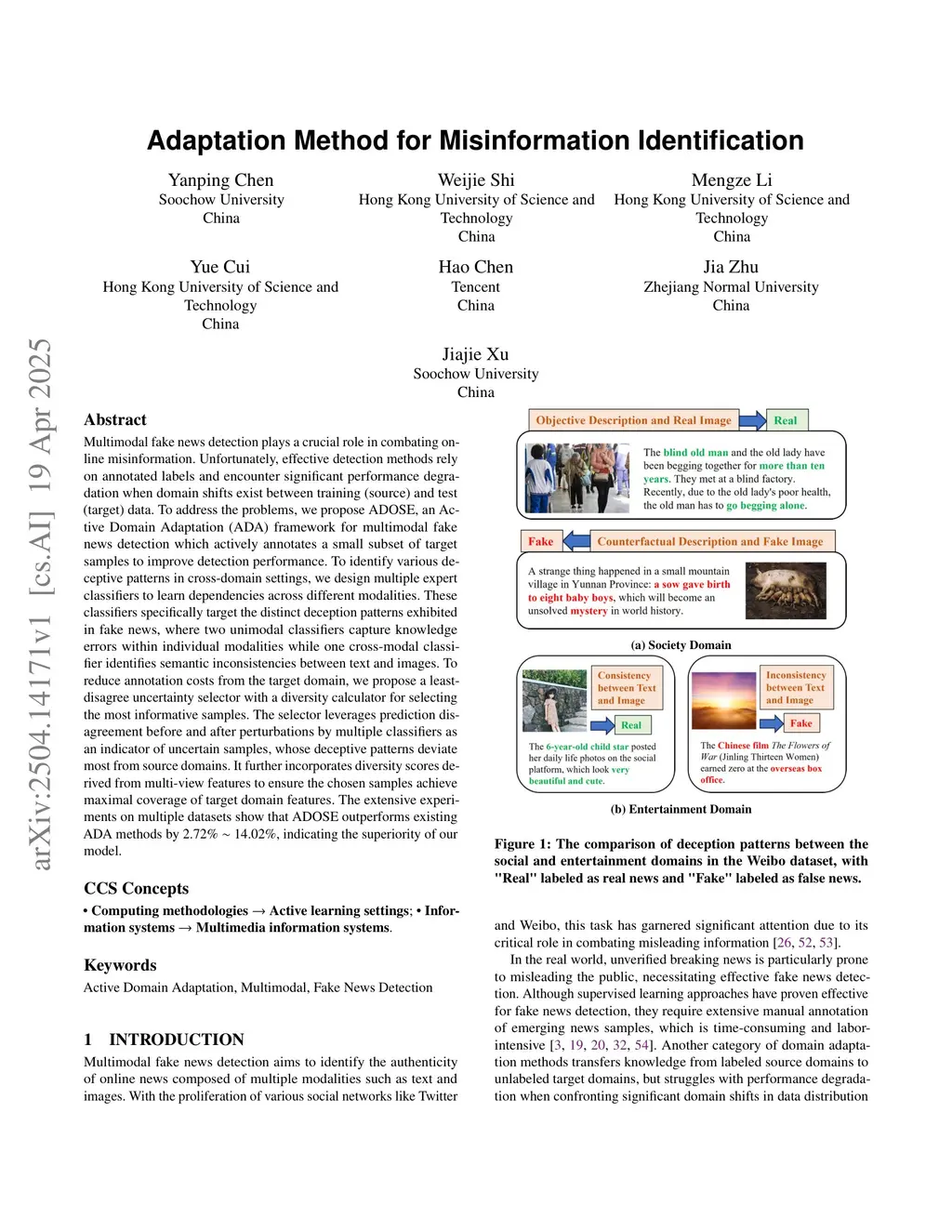 Adaptation Method for Misinformation Identification
