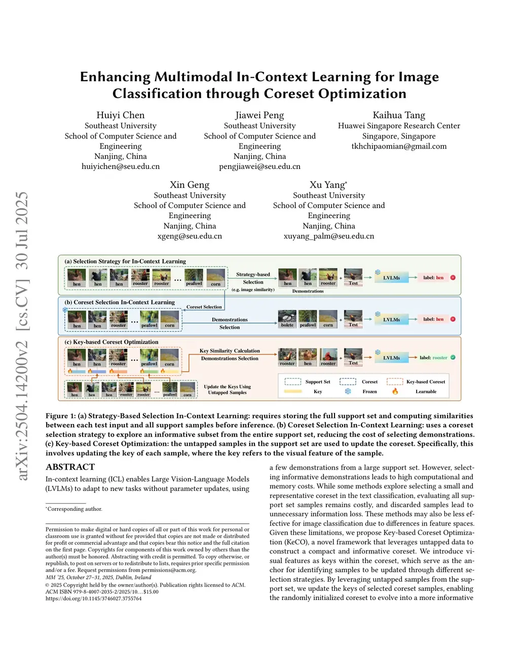 Enhancing Multimodal In-Context Learning for Image Classification through Coreset Optimization