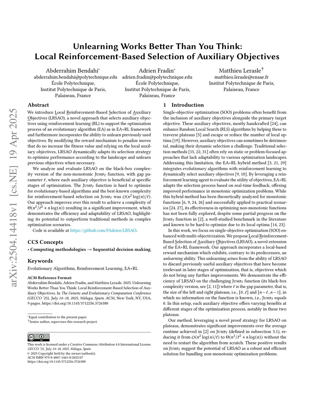 We introduce Local Reinforcement-Based Selection of Auxiliary Objectives (LRSAO), a novel approach that selects auxiliary objectives using reinforcement learning (RL) to support the optimization process of an evolutionary algorithm (EA) as in EA+RL framework and furthermore incorporates the ability to unlearn previously used objectives. By modifying the reward mechanism to penalize moves that do no increase the fitness value and relying on the local auxiliary objectives, LRSAO dynamically adapts its selection strategy to optimize performance according to the landscape and unlearn previous objectives when necessary.We analyze and evaluate LRSAO on the black-box complexity version of the non-monotonic Jump function, with gap parameter , where each auxiliary objective is beneficial at specific stages of optimization. The Jump function is hard to optimize for evolutionary-based algorithms and the best-known complexity for reinforcement-based selection on Jump was . Our approach improves over this result to achieve a complexity of resulting in a significant improvement, which demonstrates the efficiency and adaptability of LRSAO, highlighting its potential to outperform traditional methods in complex optimization scenarios.