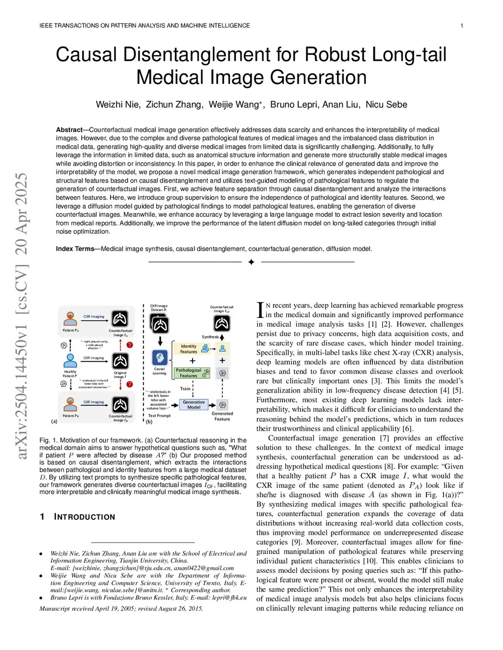 Counterfactual medical image generation effectively addresses data scarcity and enhances the interpretability of medical images. However, due to the complex and diverse pathological features of medical images and the imbalanced class distribution in medical data, generating high-quality and diverse medical images from limited data is significantly challenging. Additionally, to fully leverage the information in limited data, such as anatomical structure information and generate more structurally stable medical images while avoiding distortion or inconsistency. In this paper, in order to enhance the clinical relevance of generated data and improve the interpretability of the model, we propose a novel medical image generation framework, which generates independent pathological and structural features based on causal disentanglement and utilizes text-guided modeling of pathological features to regulate the generation of counterfactual images. First, we achieve feature separation through causal disentanglement and analyze the interactions between features. Here, we introduce group supervision to ensure the independence of pathological and identity features. Second, we leverage a diffusion model guided by pathological findings to model pathological features, enabling the generation of diverse counterfactual images. Meanwhile, we enhance accuracy by leveraging a large language model to extract lesion severity and location from medical reports. Additionally, we improve the performance of the latent diffusion model on long-tailed categories through initial noise optimization.