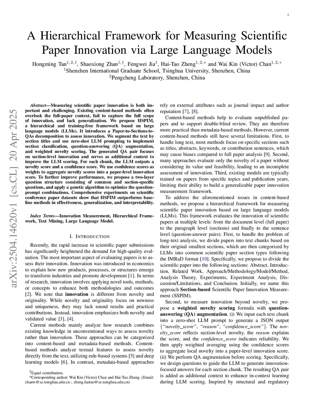 A Hierarchical Framework for Measuring Scientific Paper Innovation via Large Language Models