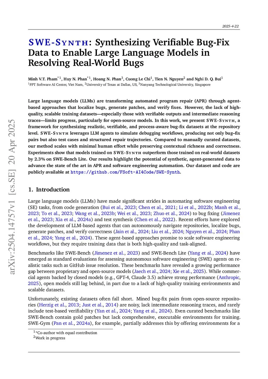 SWE-Synth: Synthesizing Verifiable Bug-Fix Data to Enable Large Language Models in Resolving Real-World Bugs