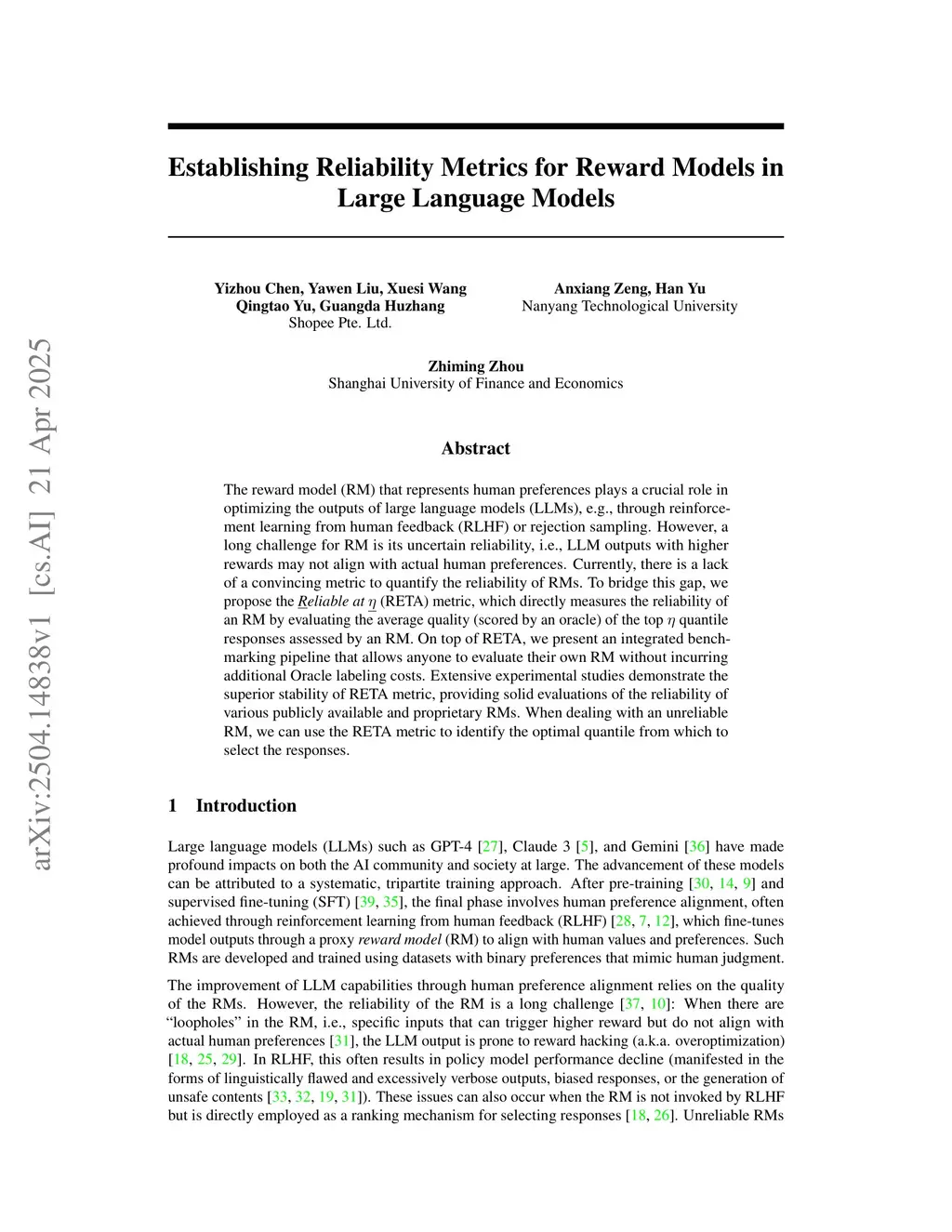 The reward model (RM) that represents human preferences plays a crucial role in optimizing the outputs of large language models (LLMs), e.g., through reinforcement learning from human feedback (RLHF) or rejection sampling. However, a long challenge for RM is its uncertain reliability, i.e., LLM outputs with higher rewards may not align with actual human preferences. Currently, there is a lack of a convincing metric to quantify the reliability of RMs. To bridge this gap, we propose the \textit{\underline{R}eliable at \underline{}} (RETA) metric, which directly measures the reliability of an RM by evaluating the average quality (scored by an oracle) of the top quantile responses assessed by an RM. On top of RETA, we present an integrated benchmarking pipeline that allows anyone to evaluate their own RM without incurring additional Oracle labeling costs. Extensive experimental studies demonstrate the superior stability of RETA metric, providing solid evaluations of the reliability of various publicly available and proprietary RMs. When dealing with an unreliable RM, we can use the RETA metric to identify the optimal quantile from which to select the responses.