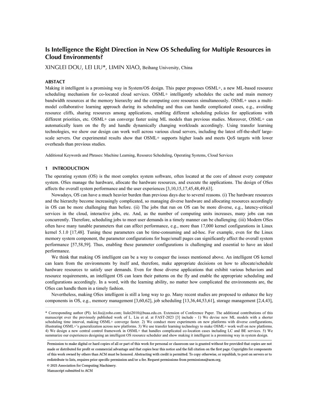 Is Intelligence the Right Direction in New OS Scheduling for Multiple Resources in Cloud Environments?