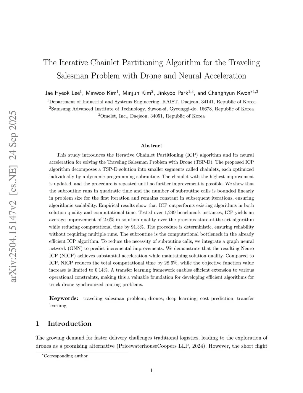The Iterative Chainlet Partitioning Algorithm for the Traveling Salesman Problem with Drone and Neural Acceleration