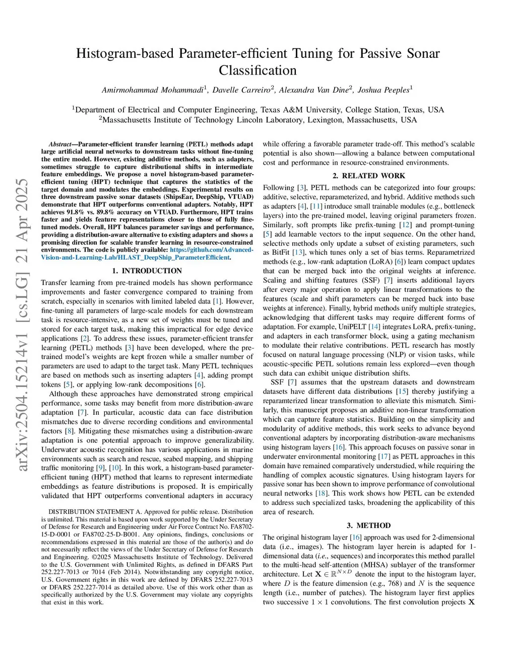 Histogram-based Parameter-efficient Tuning for Passive Sonar Classification