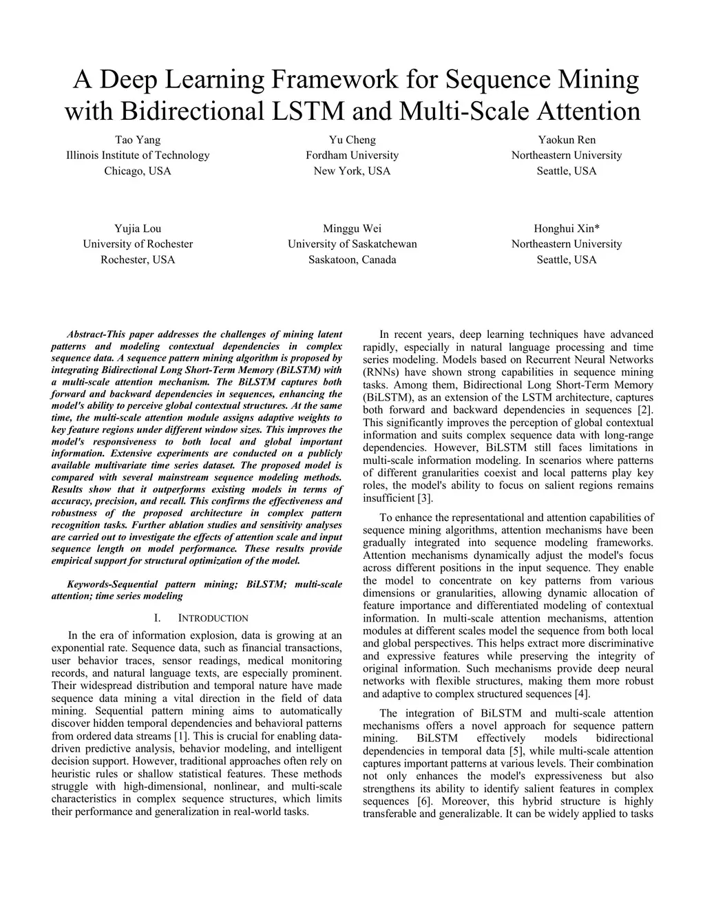 A Deep Learning Framework for Sequence Mining with Bidirectional LSTM and Multi-Scale Attention