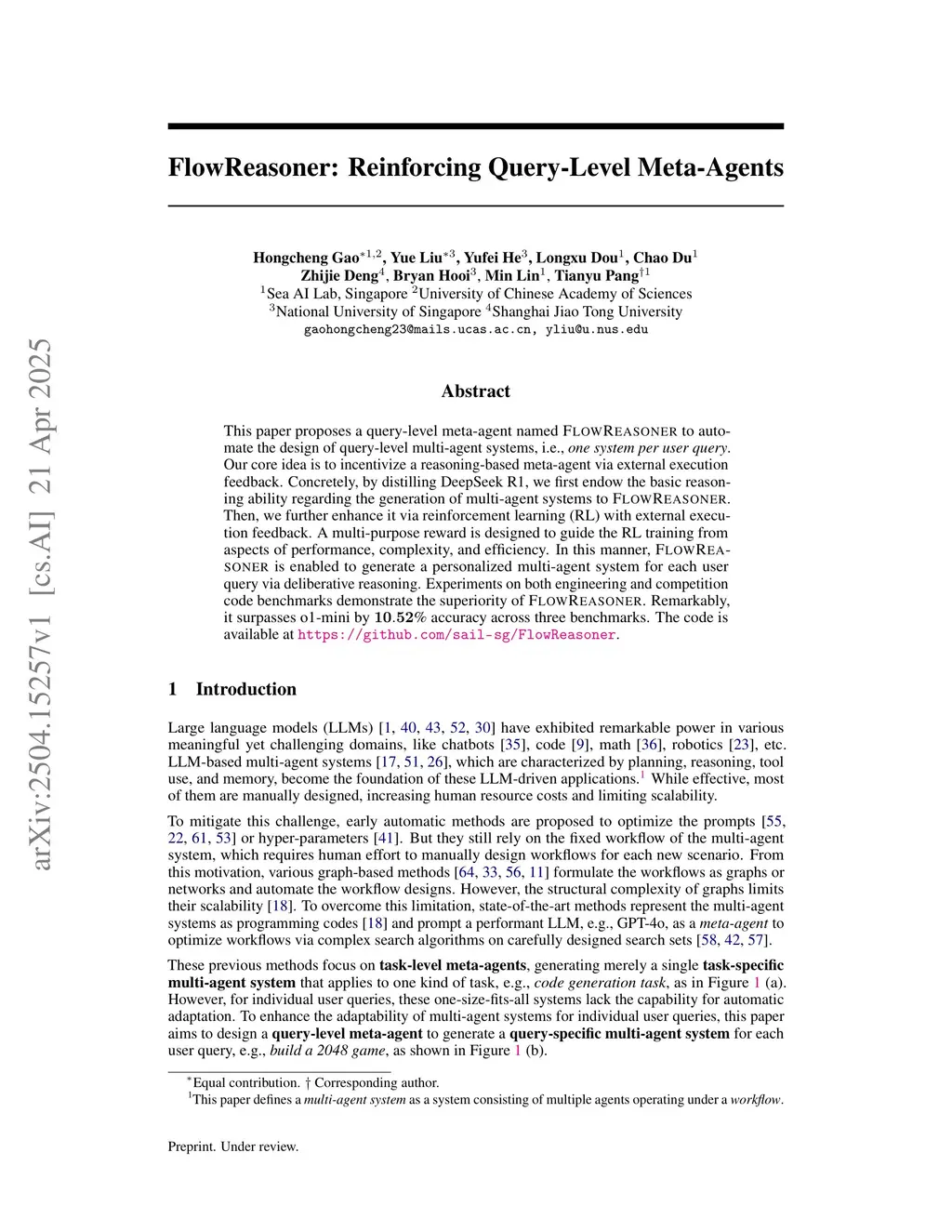 FlowReasoner: Reinforcing Query-Level Meta-Agents